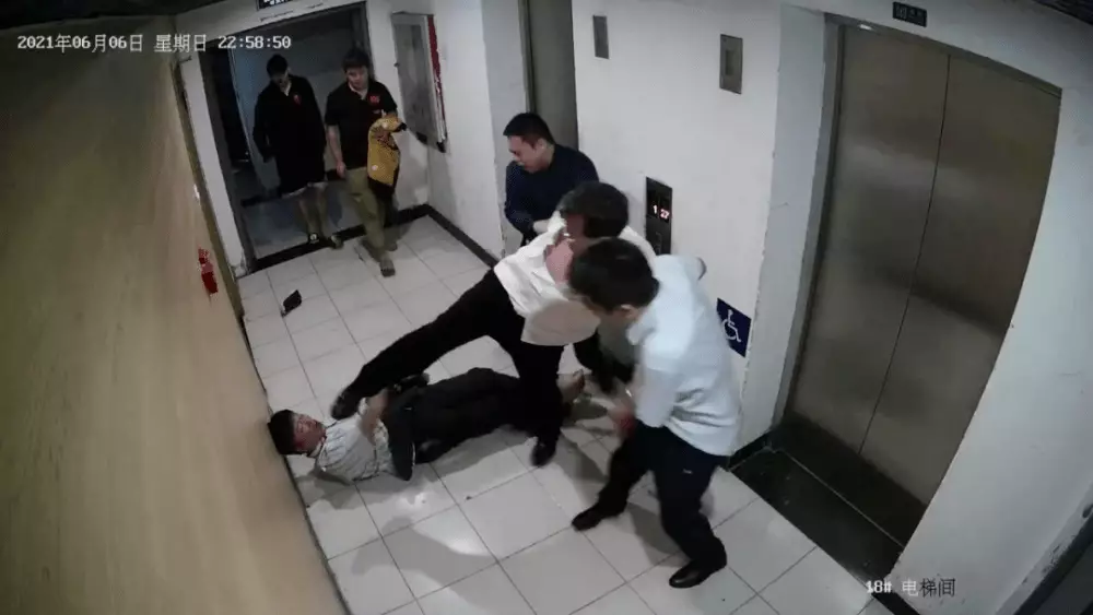 梯內,張某多次踢踹毆打王某年。期間,吳某蓉在勸阻過程中因被張某拉拽、碰撞,兩次倒地。23時18分許,張某被同事勸開,王某年、吳某蓉上樓回家。後吳某蓉因身體不適撥打120,張某陪同吳某蓉前往醫院診治,王某年在家休息。