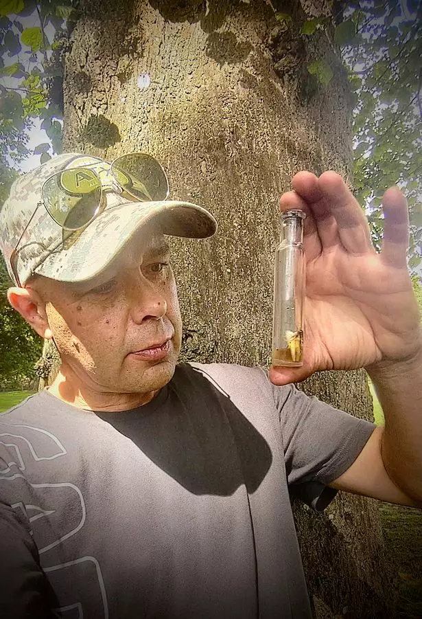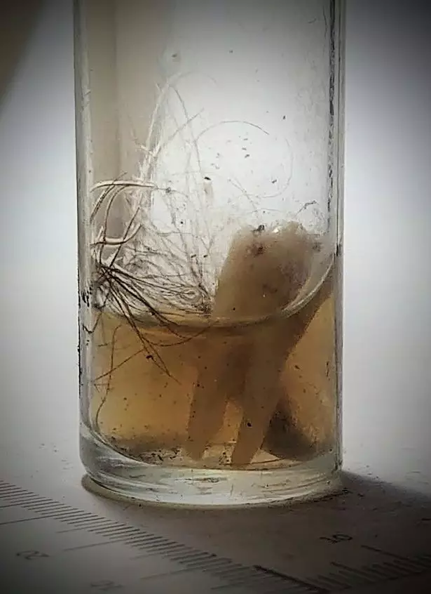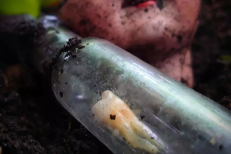 據《每日星報》報導,48歲男子Chris Langston在上月30日帶著金屬探測器到位於Shropshire一處人煙稀少的僻靜樹林裡尋寶,不久從泥土中挖出一個類似藥劑容器的玻璃瓶,他仔細觀察後發現瓶中裝有人類牙齒和毛髮,以及少量的黃色液體。