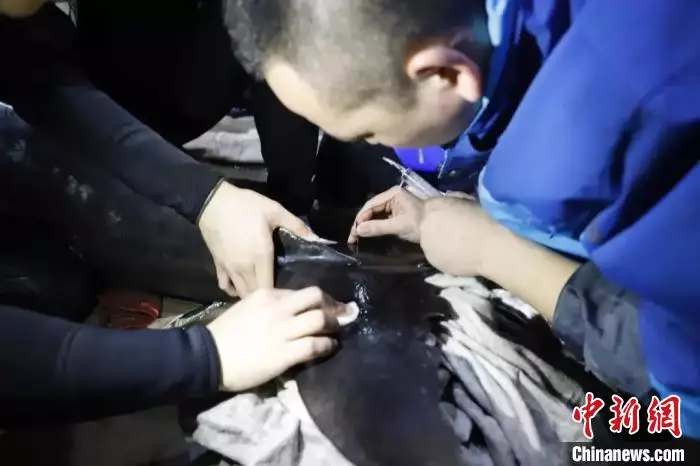 「我在不斷地清理著它的呼吸孔,不斷地撫摸著它身體,我想告訴它,你要堅強點,挺過去。」一位參與救援的海警戰士說。