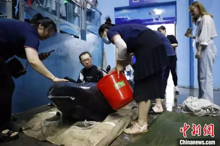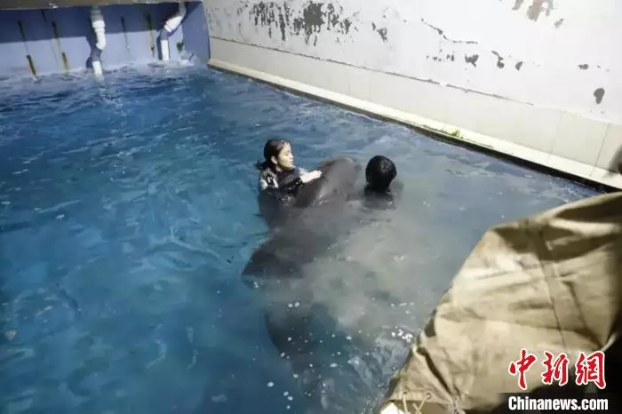 兩頭瓜頭鯨在台州海洋世界接受體檢 葉丹婷 攝