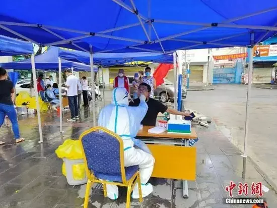 7月7日,雲南瑞麗,主城區的市民在社區內進行核酸檢測。從當日8時起,瑞麗市主城區和畹町片區開展新一輪核酸檢測。 中新社記者 韓帥南 攝