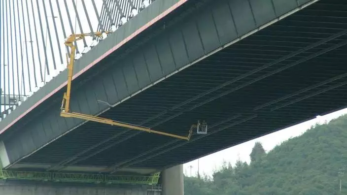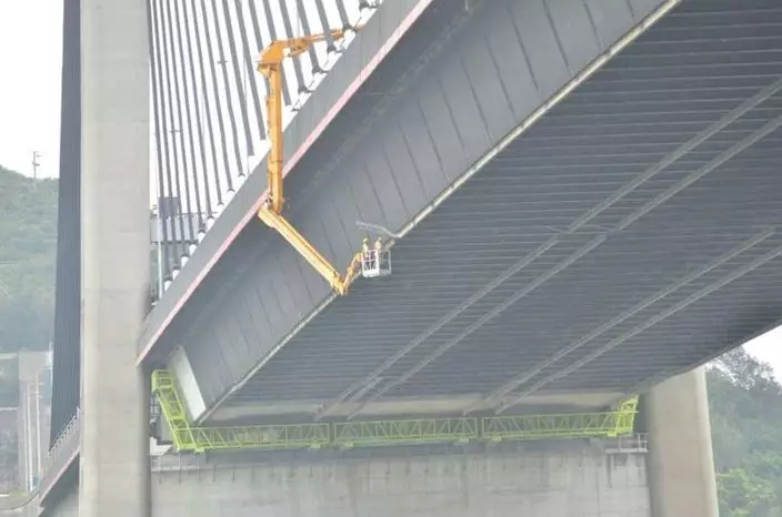 路政署工程人員昨日經6小時詳細檢查,確定大橋結構沒有受損,但橋身兩側和底部共有6條鋼條組件被撞斷,向同一方向彎曲,其中四條各長約五米。