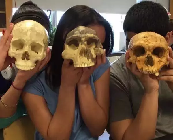 隨著時間推移腦容量越來越大,最左邊為進化了的現代智人頭骨。
