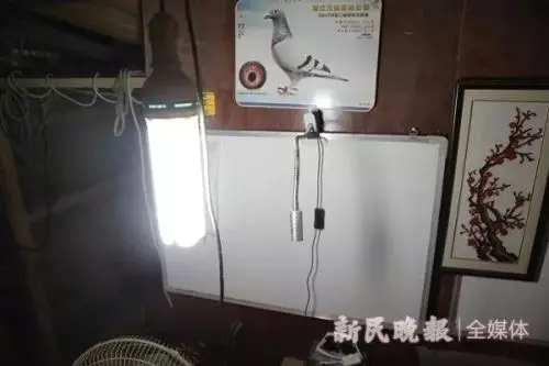 原先的平改坡樓頂變成了一座結構嚴密的「鴿舍」:南側的牆壁被20來只大小整齊的鴿籠佔滿,一張“冠軍鴿證書”被張貼在最醒目的位置,一隻節能燈發出幽暗的光芒,一台老舊的電扇正呼呼地吹著風。記者觀察到,鴿籠為木質結構,地上雜物、垃圾亂堆,消防安全隱患叢生。