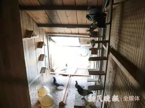 屋頂北面的鴿棚面積較小,但也擠進了數只鴿籠,天窗的窗棱上沾著許多鴿毛;屋頂南側則是兩間大鴿棚,養著數十隻鴿子。「你看,這就是拿了冠軍的鴿子!我‘進價’就很貴了,現在‘身價’更是不得了……」業主頗為得意,向記者炫耀,“這裏的面積大概有40多個平方米吧,養了大約八九十隻鴿子。這裏本來不通電的,我從樓下家裏拖過來的……”