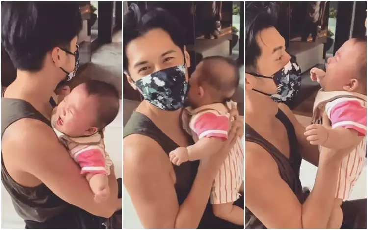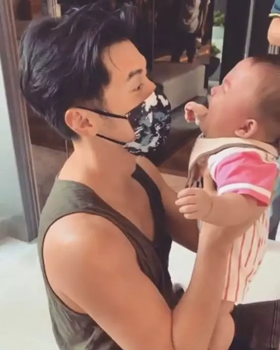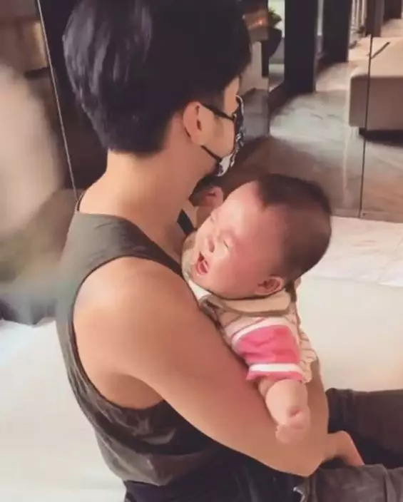 陳家樂抱起BB時對方即爆喊,令他手忙腳亂。