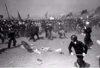 5月暴動(May Day riots)中,反對派向警方投擲石頭。1952年5月1日