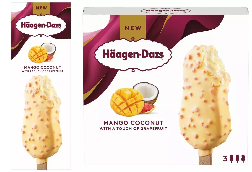 Häagen-Dazs™全新果香脆皮雪糕批隆重登場,芒椰西柚與士多啤梨柚子口味。