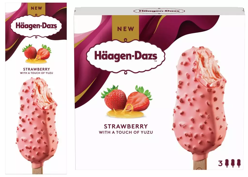 「士多啤梨柚子脆皮雪糕批」則嚴選新鮮士多啤梨融入牛奶雪糕,口感順滑細膩,果香自然甜美,加上士多啤梨柚子醬的巧妙結合,為雪糕注入一抹細緻的柑橘香氣;外層粉紅脆皮以紅桑子果肉作點綴,輕輕一咬即脆皮裂開,散發出恰到好處的酸甜味道。兩款全新果香脆皮雪糕批均以清新果香脆皮配合濃郁果醬與順滑雪糕的三重滋味,帶來層層交錯的口感,每一口都能品嘗極致果香。