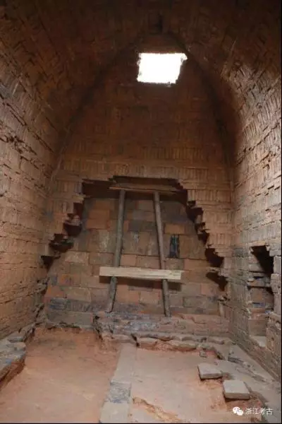 M26位於M3東北,西隔M25與M3相望,為穹窿頂雙室磚墓,形制與M3相近,規模稍小,但埋藏遠深於M3。開口距現地表1米,開口層位距後室券頂5米,南北全長9.5米(不含排水溝)。