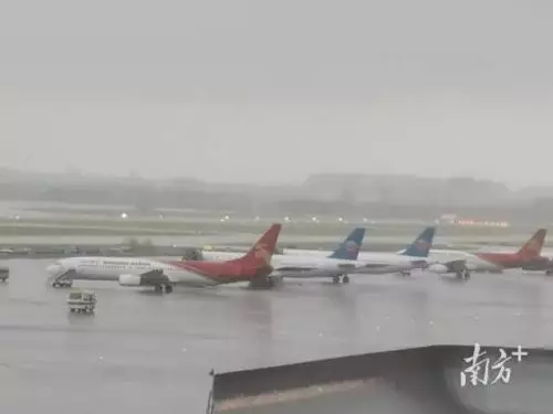 ▲7月20日早上,深圳寶安機場已下起了雨。