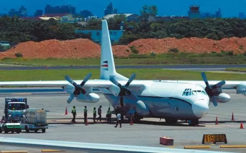 美C-130運輸機19日降落台灣桃園機場。(圖片來源:台灣「中時新聞網」)