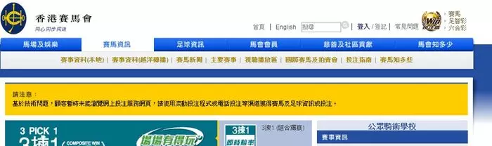 馬會發言人說基於技術問題,暫時未能瀏覽網上投注服務網頁,至於投注流動應用程式、電話投注服務及投注站服務則維持正常。