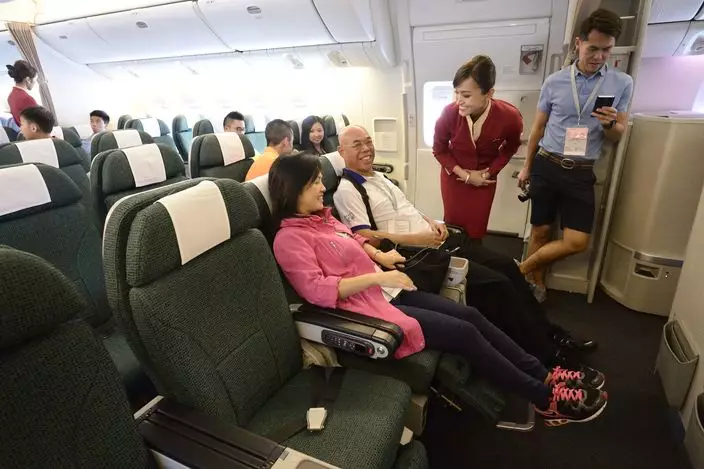 國泰航空邀請過百名市民見證首架漆上新設計波音客機,又讓市民登上客機體驗機上設備。
