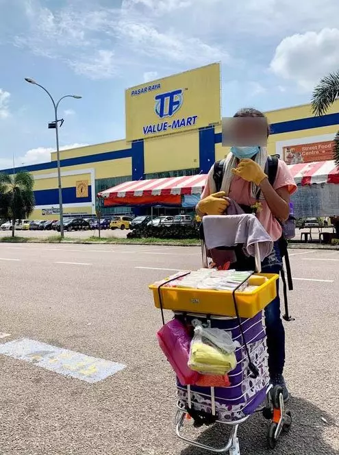 馬來西亞新山一名單親媽媽為了養育兩名孩子,不怕辛苦及日曬雨淋,一人在街上擺檔販賣糕點小食,自力更生。有網民日前在發現她頂著烈日,背著大背囊、推著裝有數大箱糕點的手拉車,步行往賣糕點的地方,網民見狀遂主動載她一程順風車。
