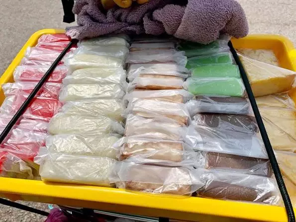 好心網民細問下,得知她每天都要帶著一袋二袋的行裝,蹣跚地步行往賣糕點的地方:「一問之下,她告訴我們,至少還要走一個半小時才能到她要賣糕的地點。當我們幫她抬她的推車上車的時候,那重量竟然有大約15公斤(約33磅),更慘的是推車輪子斷了一個。那麼瘦弱的女孩要賣個糕點竟然如此辛苦。」