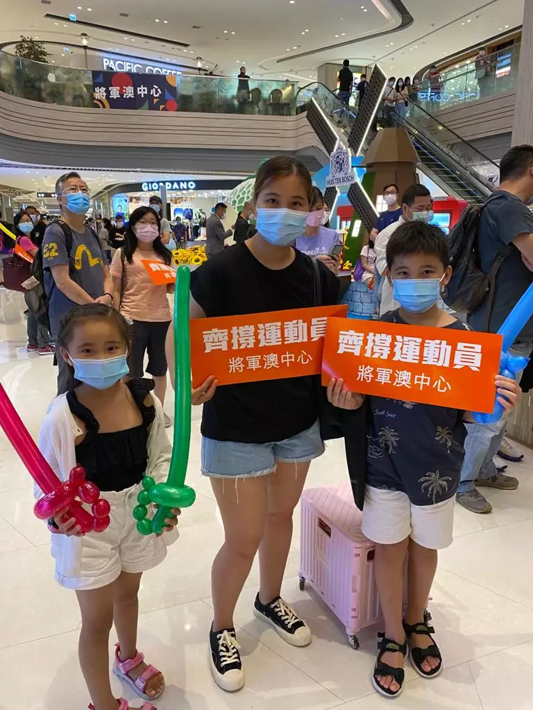 將軍澳中心今日下午3時起已有近百市民於商場中庭內等候觀看直播賽事,為港隊代表吶喊助威。當李慧詩及劉慕裳出場時現場市民經已熱烈歡呼,並在比賽進行中時不斷尖叫為香港運動員打氣!為了與現場市民一同為港將加油打氣,將軍澳中心更大派能量飲品,並即場扭製不同造型的汽球送給現場觀眾,令場內氣氛推向高峰。