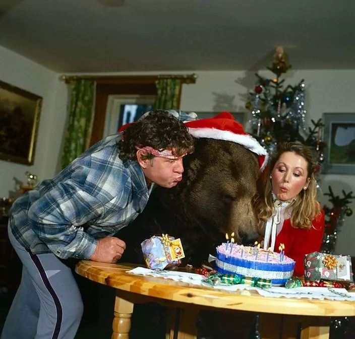 蘇格蘭奧赫特拉德一對夫婦在40年前收養一頭灰熊,更「視如己出」,一起生活,更參與荷里活電影演出。灰熊在2001年去世,丈夫無法接受「喪子之痛」,幾乎毁了婚姻,他們最近出書公開與灰熊一起生活的照片,令人驚訝。