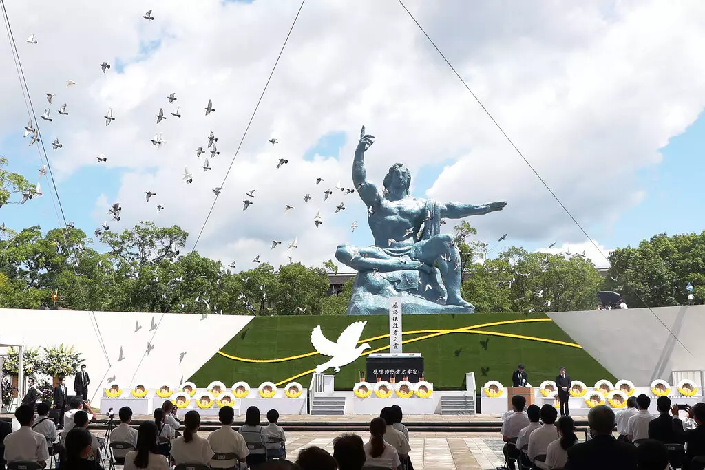 日本長崎原爆76周年,長崎和平公園舉行儀式悼念死難者。AP圖片