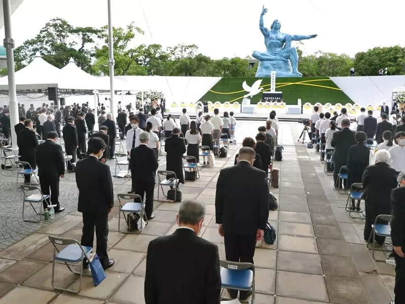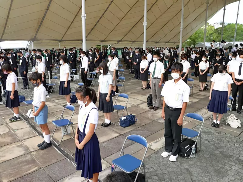 在當地時間上午11時02分,即當年原子彈投下長崎一刻,眾人默哀。受新冠肺炎疫情影響,儀式規模連續第二年縮減,最多只容許500人出席,是疫情前的10分之一。