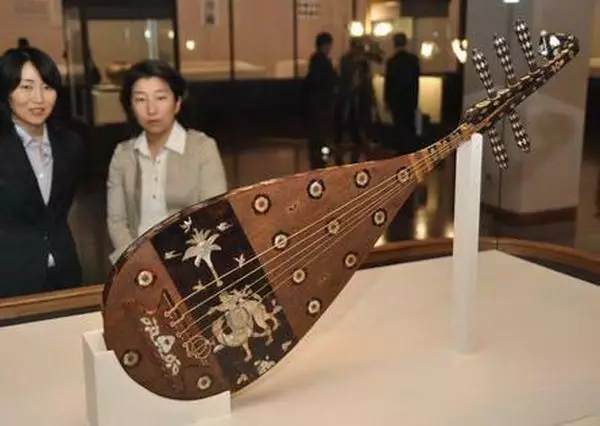 其中一項展品「螺鈿紫檀五弦琵琶」被形容為「神品」,因為琵琶一般都是四弦,五弦已經失傳,所以「螺鈿紫檀五弦琵琶」屬於傳世唯一一個五弦琵琶,我們除了在敦煌壁畫上經常看到飛天彈奏這種樂器,就只能在日本見到真品實物。