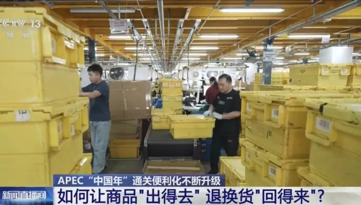廣東搭建了一條讓商品「出去」,讓退換貨「回得來」的穩定通道。央視截圖