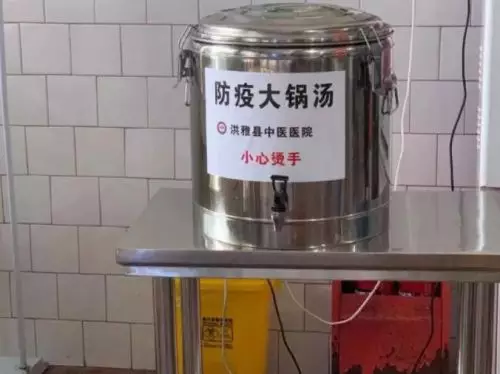 眉山洪雅縣中醫醫院參照《四川省新冠肺炎中醫藥預防建議方案》,熬制中藥「大鍋湯」。自2021年8月7日起,在兩個院區門診大廳內設置獲取點,供全縣人民免費取用。