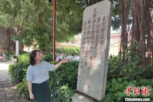 (吳冠標)走過福建泉州府文廟的大成門、穿過泮池,泉州學研究學者、黎明職業大學教師李雙幼駐足於大成殿旁一塊不起眼的石碑邊,指點著碑文,一字一句地為記者講解這篇《泉郡博胡時軒先生修學記》,「文廟的修繕在歷朝歷代都是一件重要的事,甚至可以被列入到官員政績考核之中。」