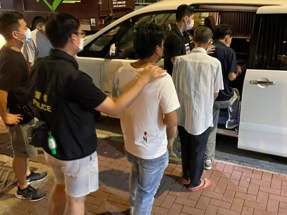 警方於荃灣拘4名男子涉街頭聚賭。警方圖片