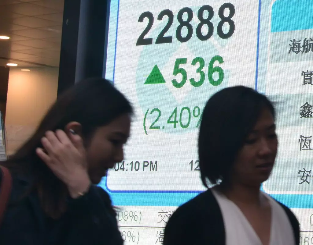 港股午後爆升,終止五連跌,恒生指數最多升628點,高見22,980點,再次挑戰二萬元,臨新尾市稍為回落,收報22,888點,全日仍升536點或2.4%;國企指數收報10,408點,升163點或1.59%;主板成交額792億元。
