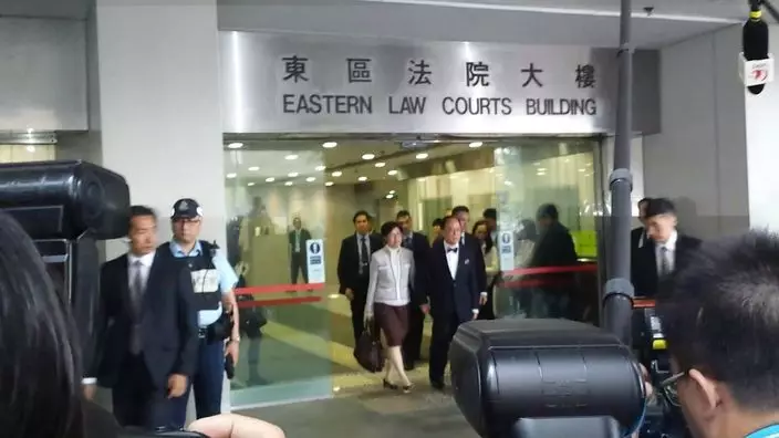 曾蔭權進行交付高等法院審訊程序,庭訊歷時僅數分鐘,曾蔭權攜同太太鮑笑薇於2時45分離開法院,二人表情嚴肅,在法院正門駐足十幾秒,即登上房車離去,亦有記者再追問「心情如何?」,曾依舊沉默不答。