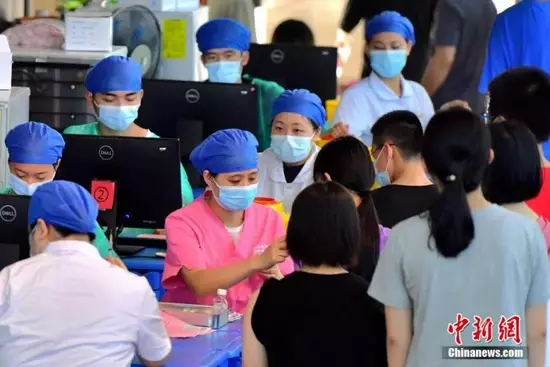 資料圖:福建省福州第四十中學金山分校疫苗接種點,醫務人員為學生接種新冠疫苗。張斌 攝