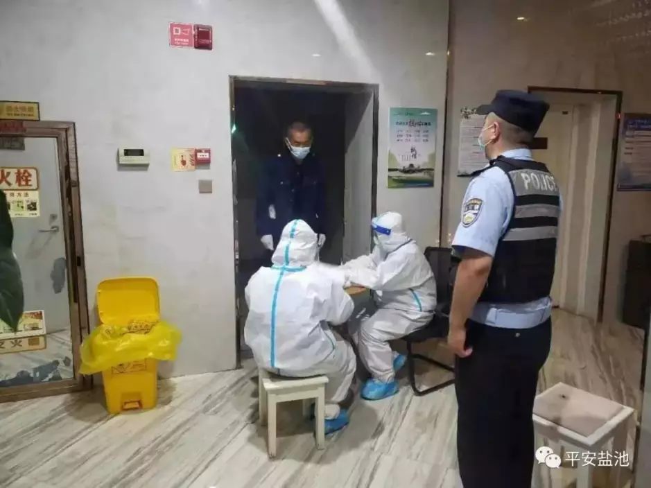 花馬池派出所接到指令後立即召集值班人員全員集合,龍翔社區警務室迅速到崗;確認患者地址,確認通訊暢通,檢查口罩、帽子、隔離服等自我防護裝備,聯繫衛健部門確認車輛。