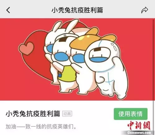 拿著喇叭的加油兔、指揮交通的交警兔、穿著防護服的抗疫兔……黃如媛說,這組表情包花費了一個星期左右的時間進行創作,中途修改了三次,一經推出,就得到許多網友的點贊支持。