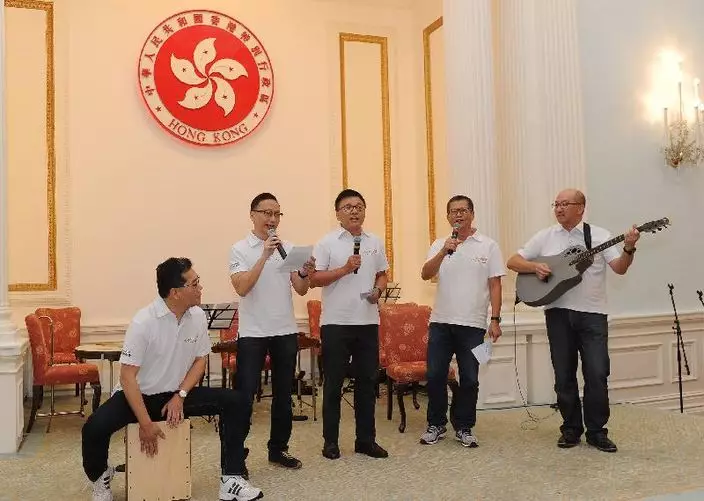 政務司司長林鄭月娥、署理財政司司長陳家強、政制及內地事務局局長譚志源等多位官員都有出席活動,其中陳家強、譚志源、商經局局長蘇錦樑等人獻唱《舊歡如夢》及《分分鐘需要你》。
