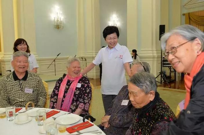 行政長官梁振英在禮賓府舉行活動,與約一百名長者歡度長者日,多位官員都有出席,又獻唱《舊歡如夢》、《月亮代表我的心》等經典名曲。
