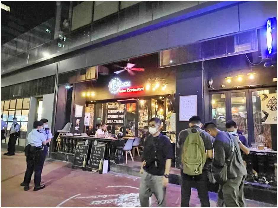 人員發現場內有兩張餐桌的分隔距離不足1.5米、3名員工未有每14天進行一次檢測或完成新冠疫苗接種、4名顧客未有以手機掃描「安心出行」二維碼或登記個人資料、負責人違反相關營業規定。執法人員遂向他們發出定額罰款通知書,餐廳負責人則遭發傳票。