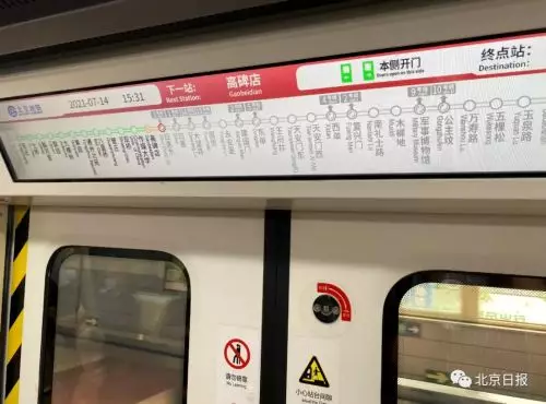此外,為進一步提高運輸效率,滿足乘客出行需求,地鐵公司新編製了1號線八通線跨線運行圖,採取工作日早晚高峰期間實施大小交路套跑的運行方式,即大交路(列車在線路的兩個終點站間運行)與小交路(列車在線路的某一區段內運行)共線運行。早高峰小交路為果園站至公主墳站,晚高峰小交路為古城站至果園站。早高峰期間最小行車間隔1分45秒,晚高峰最小行車間隔2分20秒。