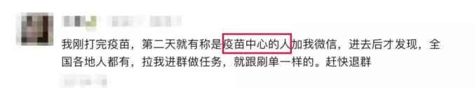 這當然是假的!疫苗接種和做任務有什麼關係?這只是騙子接近你的一種方式。只要對方拉你入群,請馬上退出!