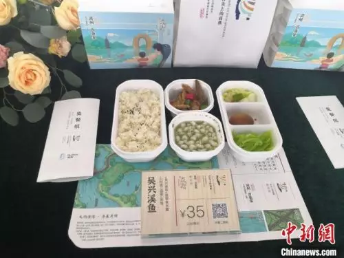 「過去我們坐高鐵點的盒飯都相對簡單,沒想到這次的套餐里有吳興溪魚、魚米羹,味道很鮮,而且性價比挺高,只要35元。」張英豪吃之前還特意將飯菜分別擺好,用手機拍下這「精緻一餐」。