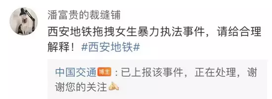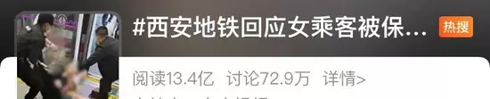 上述說明發佈後並未平息爭議。話題「西安地鐵回應女乘客被保安拖拽」登上微博熱搜,閱讀量13.4億。