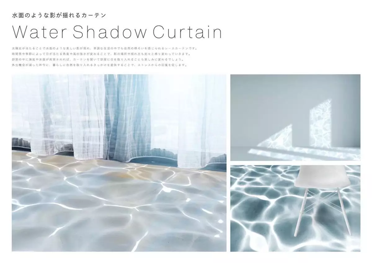 日本創意團隊tokeru日前在社交平台發文,公布以一款名為「Water Shadow Curtain」的透光窗簾參加今年的Tokyo Midtown Award。這款「水波紋窗簾」以類似薄紗的材料製成,作為窗簾雖然遮光度不高,卻有效利用光線角度,在地上造出如同水面波光粼粼的夢幻效果。