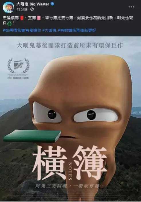 另外,「大嘥鬼」在帖文中表示:「無論橫簿、直簿、單行簿定雙行簿,最緊要係寫晒先用新,咁先係環保!#如果唔係會有鬼搵你 #大嘥鬼 #有啲簿係再造紙更好」
