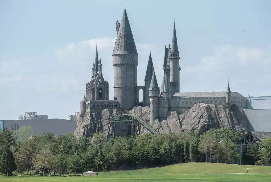 資料圖:2021年6月21日,北京環球度假區盛大啟幕前的各項準備工作正在按計劃穩步推進中。圖為哈利波特霍格沃茨城堡。圖/IC photo