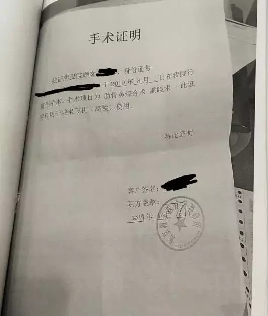 △ 應聘者按約定貸款並做美容手術後,醫美機構開的證明
