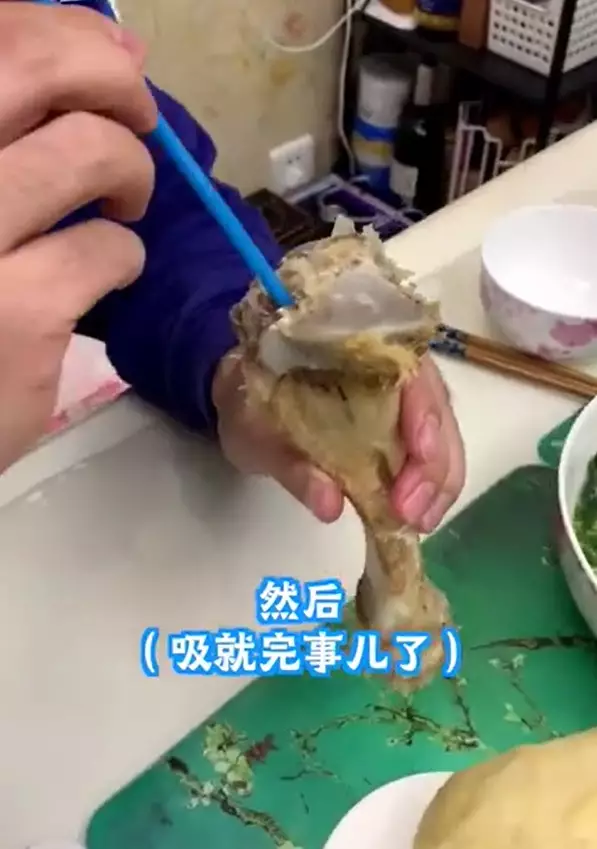 有人覺得豬骨或牛骨內的骨髓營養又美味,因此會一併食用。不過堅硬的骨頭往往難以敲開,最近內地一名骨科醫生在食用大骨頭時,由於無法將骨頭敲開,竟想起給豬骨「動手術」的念頭,用電鑽鑽孔,再用吸管吸出骨髓食用,這場另類的吃播令網友見了目瞪口呆。