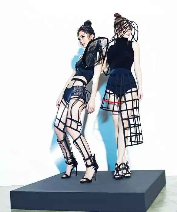 兩人穿上以線條為主的設計,寓意五線譜模樣,內裡再以泳衣襯托,在一片漆黑的環境下拍攝,攝影師叫兩人隨意走動,阿Sa及阿嬌坦言非常享受:「第一次在全黑環境中拍攝,無人望住感覺比平時自然,很爽!」但最考驗Twins的並不是這身泳衣裝束,而是一對不合尺碼的高跟鞋,阿嬌於拍攝前兩日更不慎扭傷腳,做出踢腿、彈跳等都很吃力。阿Sa則見怪不怪並笑謂:「其實她一向行路都很不小心,經常左腳撞右腳,很不小心!」