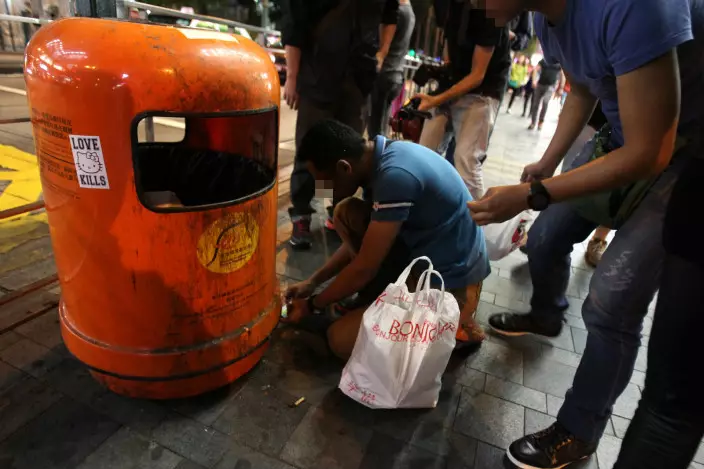 尖沙嘴鬧市昨晚爆發途人搶拾「鑽石」的一幕。有記者將拾獲的「鑽石」交由行內人鑑定後,證實是蘇聯石,1粒值不到10元。