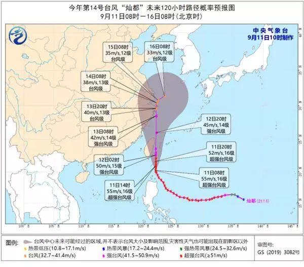 預計,「燦都」將以每小時10-15公里的速度向偏北方向移動,12日下午到傍晚將擦過或登陸台灣島東北部(45-50米/秒,14-15級,強颱風級),爾後移入東海南部海面,逐漸向浙江東北部一帶沿海靠近,強度緩慢減弱。