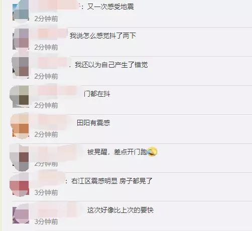 據微博網友反饋,百色多地有明顯震感↓↓↓